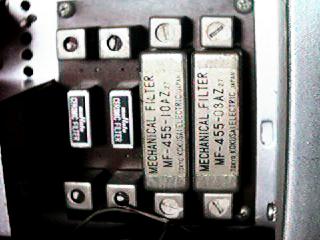 写真説明 左上)上部ケースを開けた状態です 大変内部が綺麗なのがわかりますか? 特にトランスの色をみてください。キラキラと光り輝いているでしょう?・・ 右上)内蔵XTAL関係です SSB,CW,FM,AMが内蔵されています。 左下)50MHZ、144MHZのコンバーター基板です どうです。この充実したオプション関係は・・・・ ヨダレが出てきませんか??!! (^.^)V |