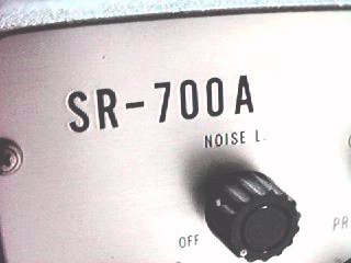 SR700Aの銘板表示の拡大です 正面左上にあります 写真にあるのはノイズリミッタースイッチです ON−OFFするだけなのにこのスイッチの重厚さ |
