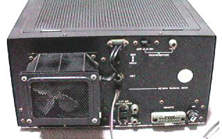裏側の写真です 大きなFANユニットがついています 何と大きな!! トランシーブコネクター(右下の大きいコネクタ)が 準備されています FANの下にANTコネクターが隠れています 他はコンバーターコネクタ類です |