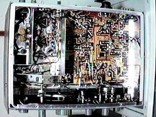 ケース内部から見た写真です 一応送信機です 写真では見にくいかもしれませんが ファイナルが二本並んでいます(写真左上) 写真下側が正面です |